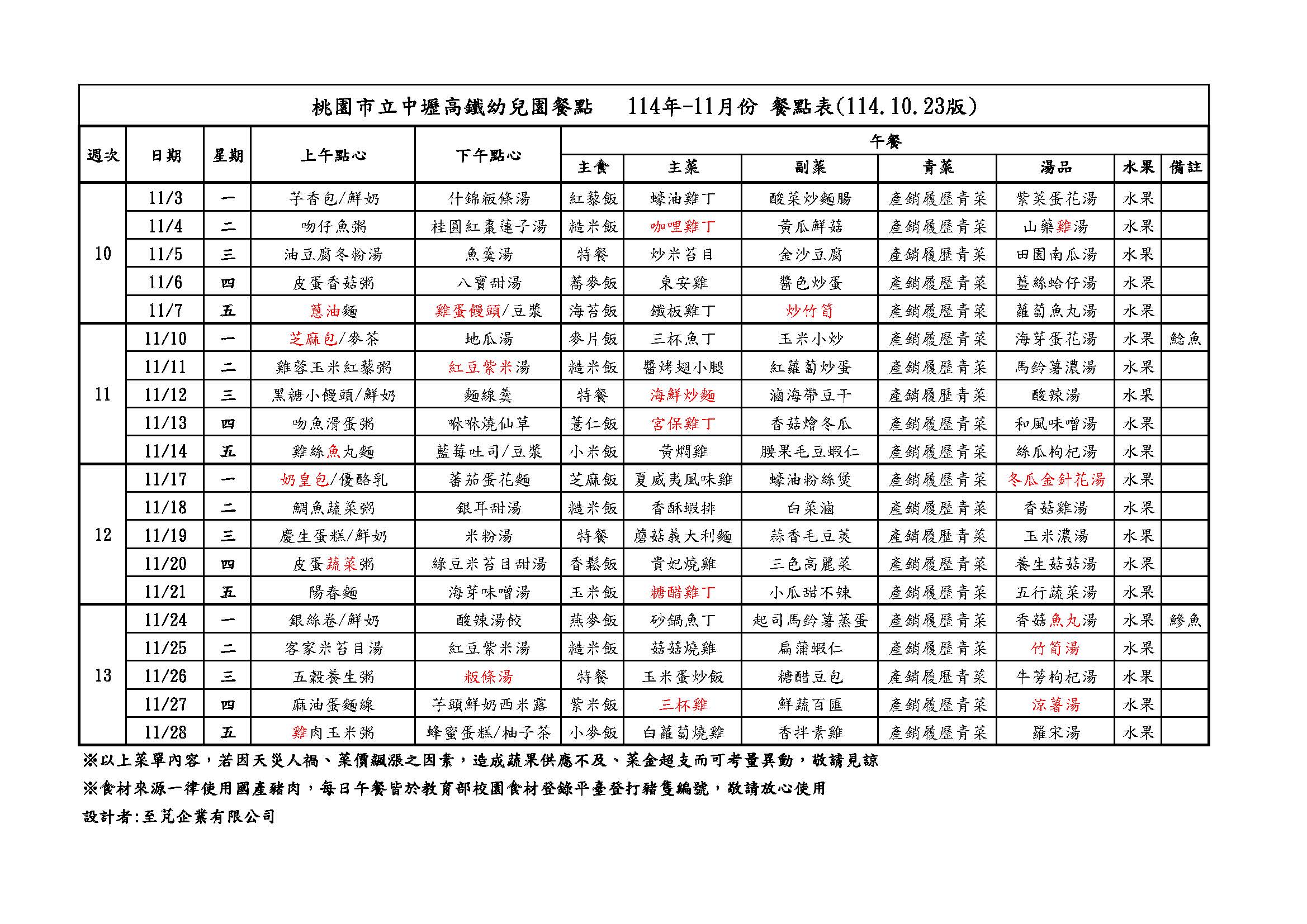 中壢高鐵幼兒園114年-11月餐點表(114.10.23更新)