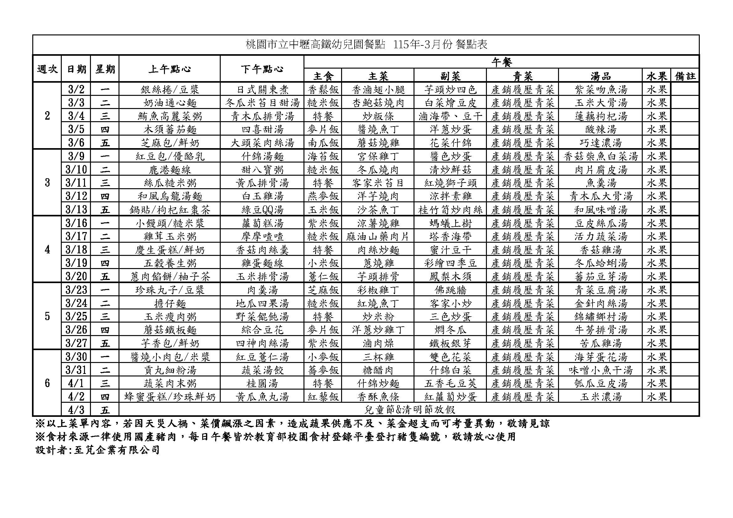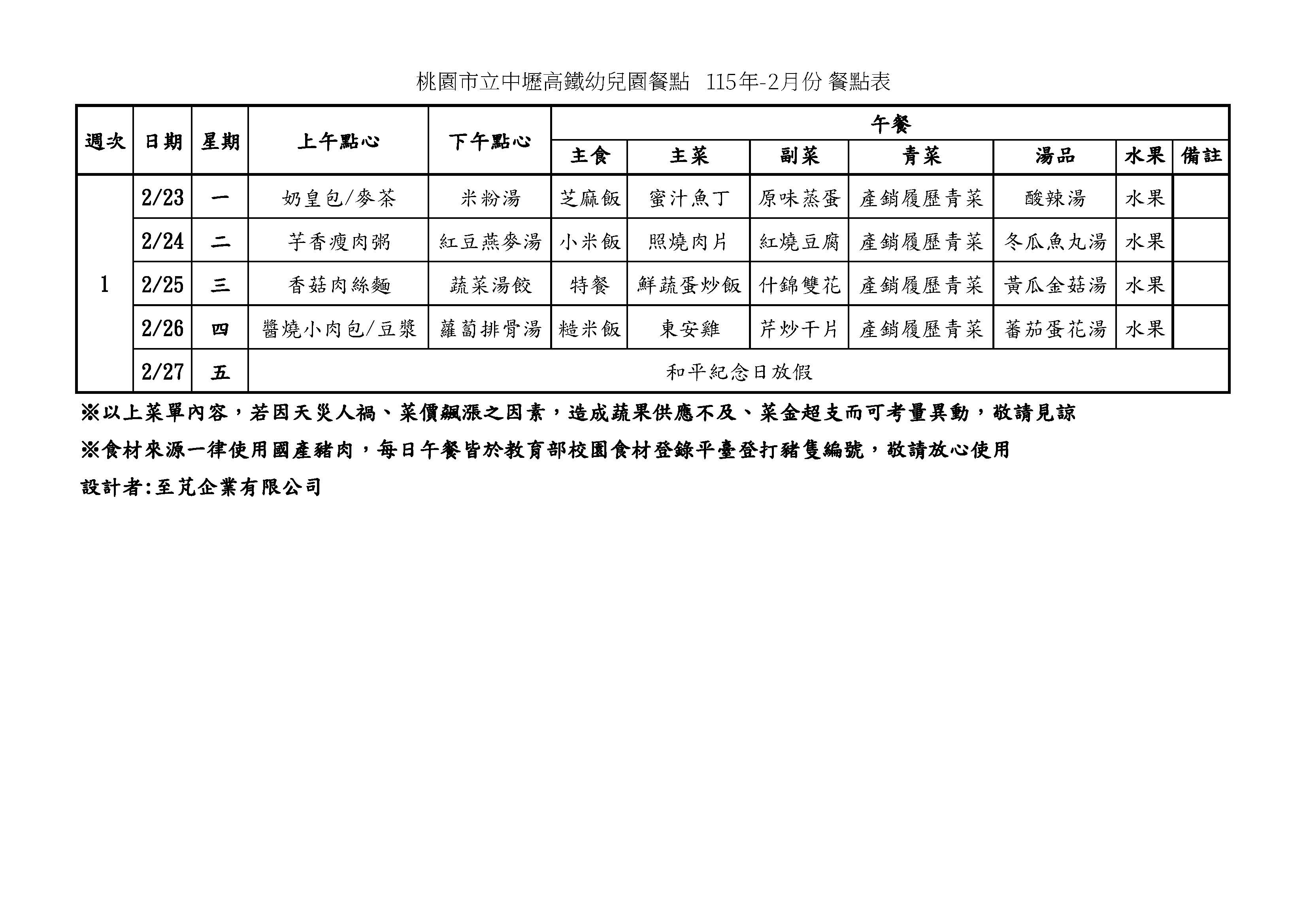 115年-2、3月餐點表